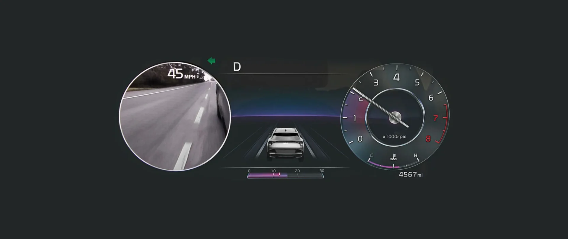 Activated by your turn signal, the available Blind-Spot View Monitor displays a live video feed of your vehicle’s rear blind spots in your dashboard gauge cluster to help you change lanes with confidence.